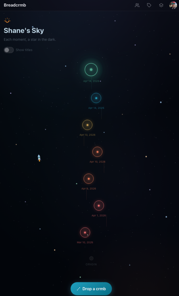 Breadcrmb tracks your journey of growth, so you can look back at how far you’ve come, and leave a path for others to follow.
